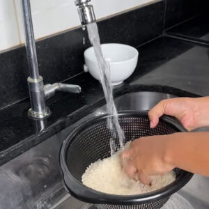 - Para começar vou lavar 2 xícaras de arroz.