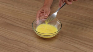 - Para começar, em uma tigela vou adicionar 2 ovos e vou mexer.