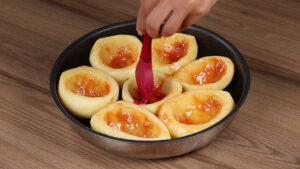 - Após isso vou colocar as batatas em uma panela, e vou pincelar o molho de tomate.