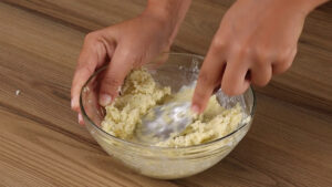 - Após isso, em uma tigela vou adicionar o queijo muçarela, 1 colher de salsa desidratada, 3 dentes de alho picados, 30 gramas de manteiga 1 colher de sopa de maionese e vou mexer bem esses ingredientes.