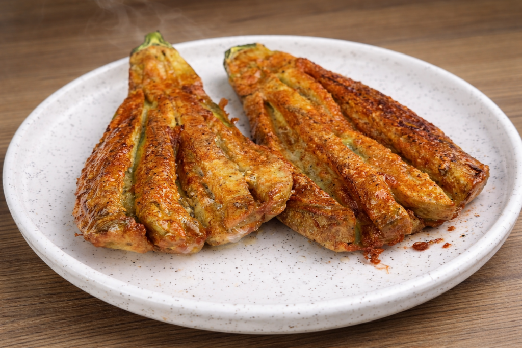 Não cozinhe demais a berinjela para manter a textura ideal. Sirva quente para aproveitar toda a crocância.