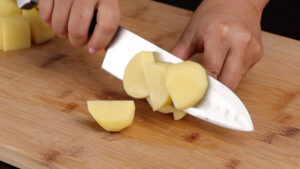 • Para começar vou cortar 250 gramas de batatas em cubos.