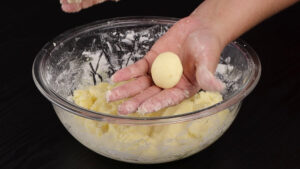 • Para continuar, vou pegar uma parte dessa massa e modelar em formato de bolinhas.