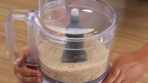 - Vou precisar também de 3 fatias de pão de forma. Vou cortar esses pães em pedaços pequenos e depois passar para um mix para triturá-los.