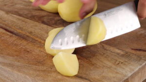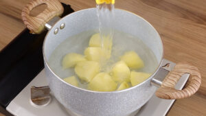 - Depois vou passar essas batatas para uma panela, adicionar água e deixar que se cozinhe.