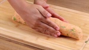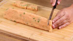 • Após isso vou cortar na espessura de 1 dedo.