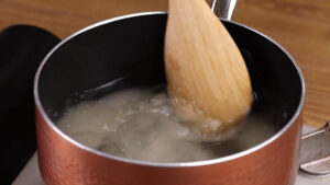- Em uma panela em fogo médio vou adicionar 3 xícaras de açúcar, 300 ml de água, 1 colher de sopa de suco de limão, vou misturar bem até que esse açúcar esteja completamente derretido e a nossa calda comece a ferver.