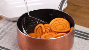 - Deixarei esses bolinhos fritarem 2 minutos de um lado e depois vou virar para fritar o outro lado.
