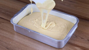 - Em seguida vou despejar a mistura que fizemos, aqui dentro. E vou levar ao forno a 180 graus por 40 minutos.