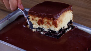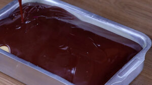 - E depois que o nosso bolo estiver assado vou adicionar essa calda por cima. Você também pode usar nessa calda chocolate branco, fica uma delícia! Quando esfriar vou levar na geladeira por 30 minutos.
