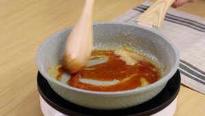 - Em uma frigideira em fogo baixo vou adicionar 60 g de açúcar e mistura bem até queesse açúcar esteja completamente derretido. Após isso vou adicionar 1 colher desopa de margarina e misturar bem com esse caramelo.