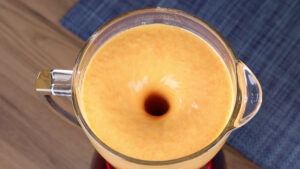 • Em um liquidificador vou adicionar 2 cenouras cortadas em rodelas, 3 ovos, 1 xícara de leite, 1 xícara de óleo e 2 xícaras de açúcar, vou bater tudo isso por 1 minuto.
