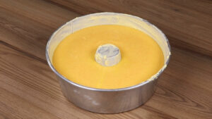 • Após isso vou colocar toda nossa mistura em uma forma untada com manteiga e farinha de trigo. E vou levar ao forno a 200 graus por 35 minutos.