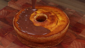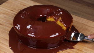 • Para finalizar vou despejar toda essa calda por cima do nosso bolo.