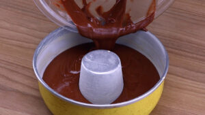 - Para continuar vou passar toda essa mistura para uma fôrma untada com manteiga e farinha de trigo e vou levar ao forno a 180 graus por 30 minutos.