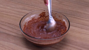 - Agora em uma tigela vou adicionar 200 ml de leite, 2 colheres de sopa de chocolate em pó, e vou misturar.