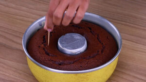 - Quando o bolo já estiver assado, com ajuda de um palito vou fazer alguns furos para ajudar a absorver melhor a calda.