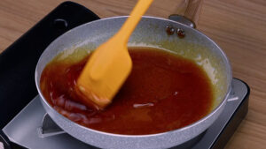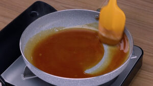 - Para começar em uma frigideira vou adicionar 1 xícara de açúcar, e vou mexer até que esse açúcar derreta completamente e forme um caramelo.
