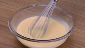 - Em seguida em uma tigela vou adicionar 4 ovos, 400 gramas de leite condensado e 300 ml de leite. Vou misturar bem esses ingredientes.