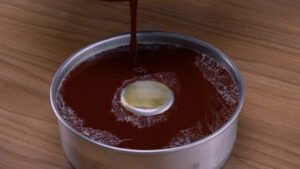- Agora vou adicionar essa mistura na fôrma e vou reservar.