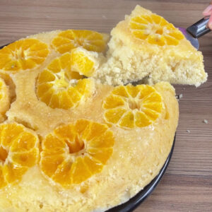 - Depois é só desenformar e pronto, nosso bolo de tangerina feito na frigideira está preparado e ficou uma delícia. Não deixe de fazer na sua casa e depois voltar aqui pra dizer nos comentários como ficou!