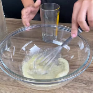 - Depois adiciono 1 litro de refrigerante Sprite, vou mexer novamente, levar para uma forma untada com óleo, levar para a geladeira e deixar até firmar bem.