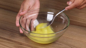 - Agora em uma tigela vou adicionar 1 ovo e bater.