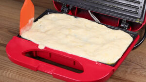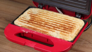 - Vou fechar a sanduicheira e deixar assar por 7 minutos.