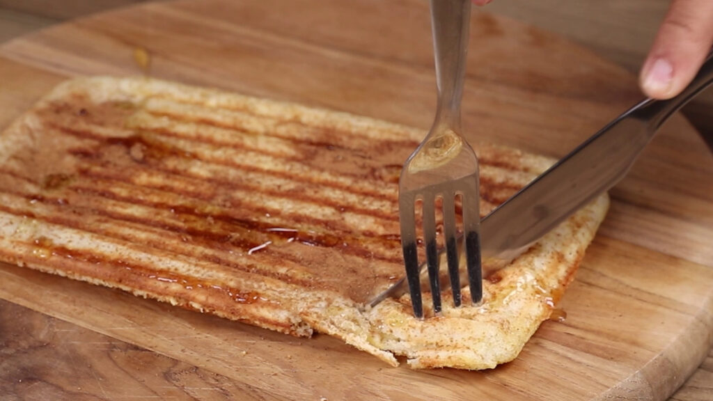 - E para finalizar vou polvilhar um pouco de canela em pó por cima, e adicionar um pouco de mel.
