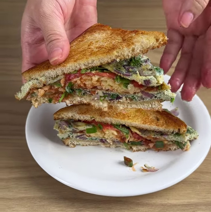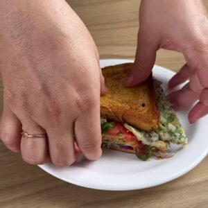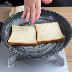 • Numa frigideira untada com manteiga, vou colocar 2 pães de forma e deixar torrar.
