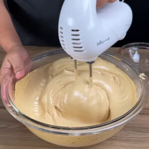 - Com ajuda de uma batedeira, vou bater até ficar bem cremoso .