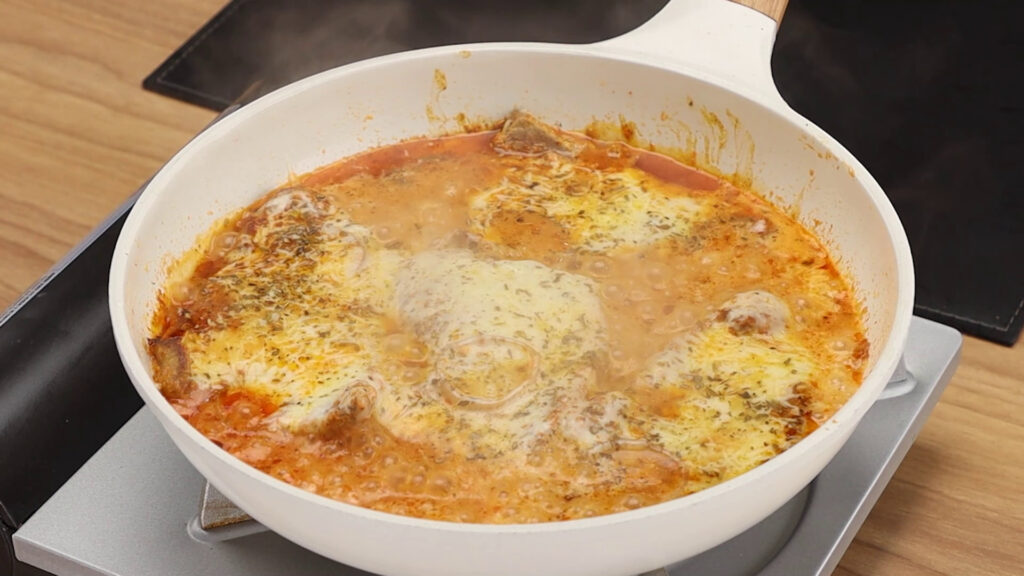 Carne na frigideira com queijo muçarela