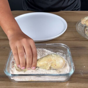 Coxas de frango empanadas com leite e farinha