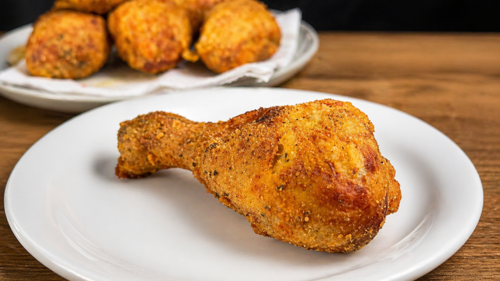 Saftige Hähnchenschenkel, innen zart und außen knusprig, in Milch gekocht für extra Geschmack und anschließend paniert und frittiert.