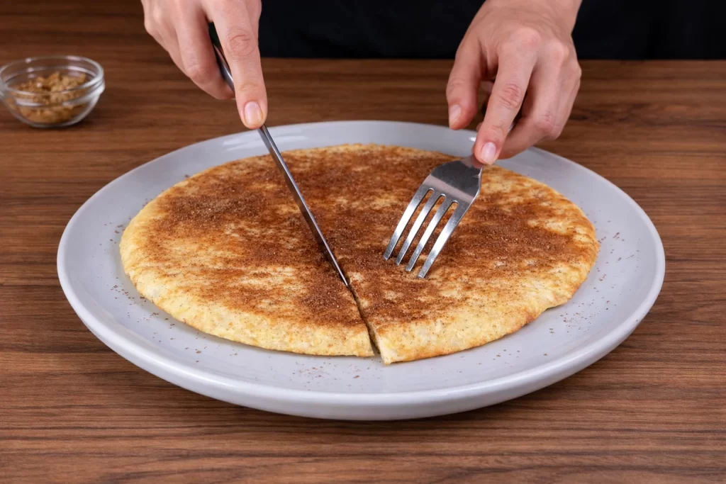 You can add cinnamon, honey, or fresh fruit on top. It can also be filled with cheese, shredded chicken, or peanut butter for extra flavor.