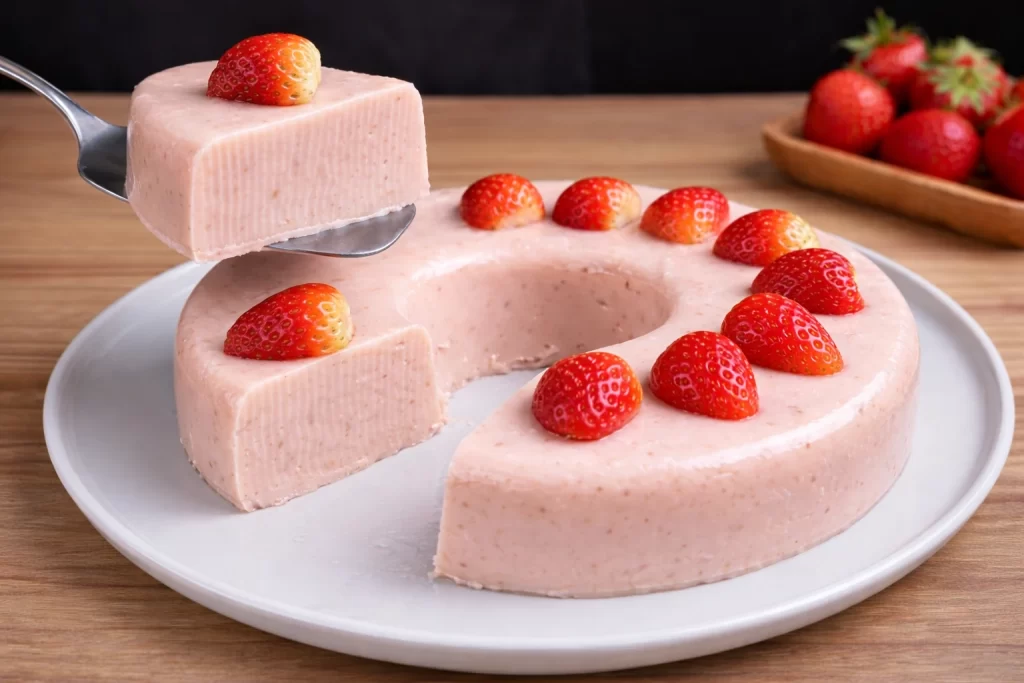 A delicious dessert made with fresh strawberries, milk, and condensed milk. It becomes creamy, firm, and perfect to serve chilled.