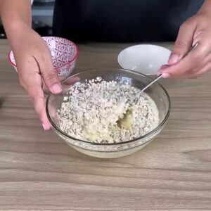 • Agora vou adicionar 3 colheres de aveia, misturar bem e deixar reservado.