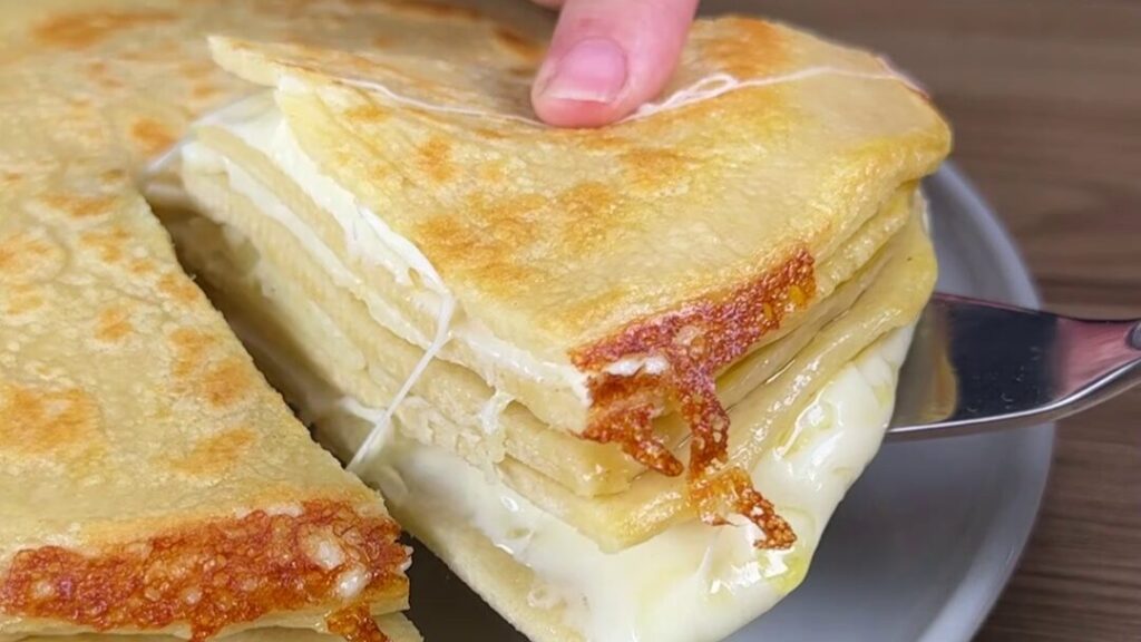• Montagem e Finalização: Unte a frigideira com manteiga, adicione uma camada de massa, queijo, e repita as camadas. Finalize com manteiga por cima e cozinhe até o queijo derreter. Vire a massa na frigideira para dourar ambos os lados.