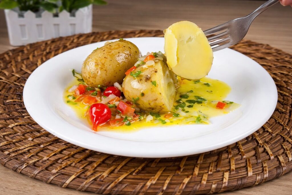 - Faites cuire les pommes de terre dans l’eau pendant environ 15 minutes jusqu’à ce qu’elles soient tendres mais fermes. Égouttez-les.