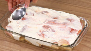 • Vou despejar toda essa mistura por cima do frango.