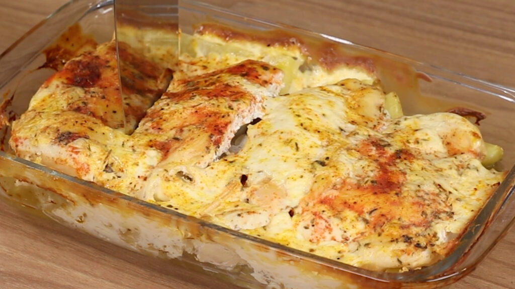 Frango com batatas e queijo