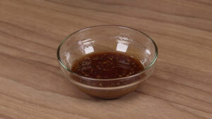 • Agora em uma tigela vou adicionar 2 colheres de sopa de azeite, 1 colher de chá de corante, 1 colher de chá de pimenta do reino, 1 colher de chá de sal, 1 colher de chá de orégano e vou misturar bem.
