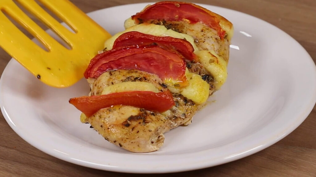 Frango com queijo e tomate