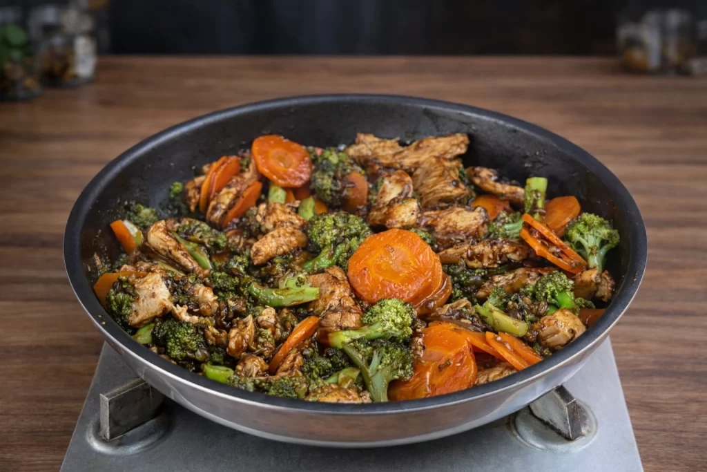 Un delizioso pollo con broccoli e carote preparato in stile orientale con salsa di soia e una salsa leggera e saporita. Una ricetta veloce e gustosa perfetta per pranzo o cena.