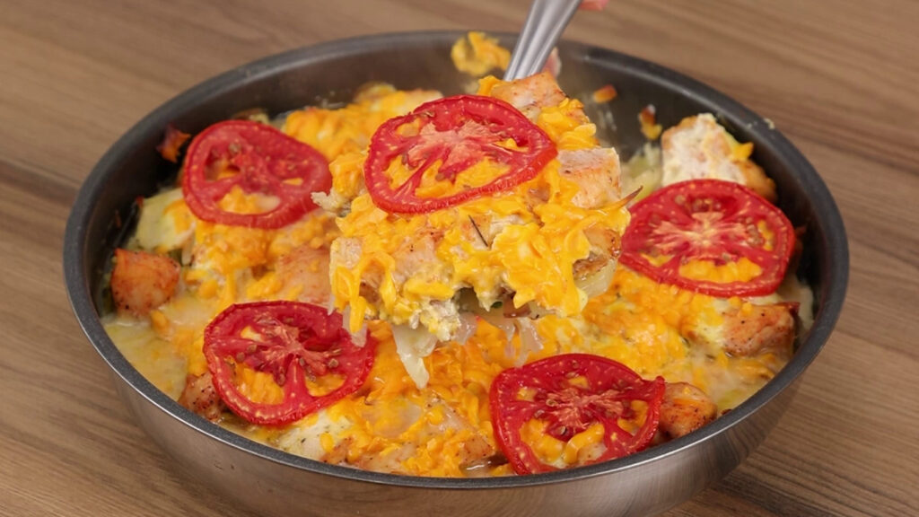 Jantar completo com batata, bacon e frango