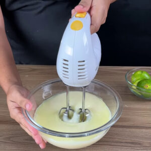 - Para começar, numa tigela com 3 caixas de leite condensado vou colocar suco de 3 limões e bater por uns 5 minutos.