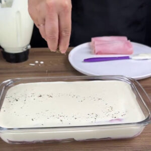 - Agora em uma travessa vou colocar o macarrão enrolado em fileiras, vou despejar os ingredientes por cima, depois adiciono orégano.