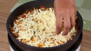 • Para continuar vou adicionar por cima de tudo isso queijo muçarela ralado.