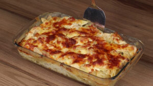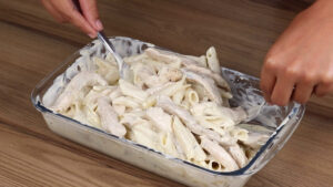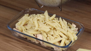 Macarronada fácil com frango e queijo muçarela