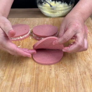• Mortadela cortada em rodelas grossas